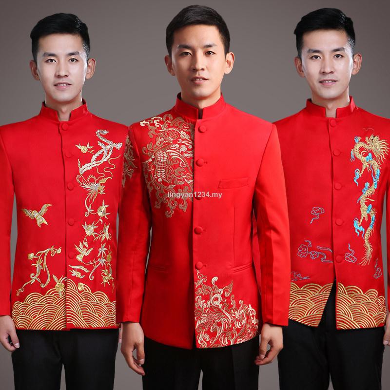 Kostum Gaun Pengantin Cina Menunjukkan Pakaian Pengantin Lelaki Wo Suit Tang Saman Pengantin Lelaki Toast Suit Kostum Tunik Cina Shopee Malaysia